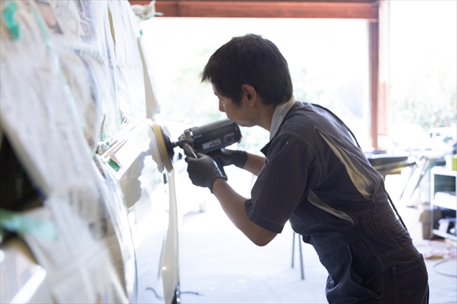 修理箇所とほかの部分との差が出ないよう、塗装面の表面の肌もあわせていきます。
