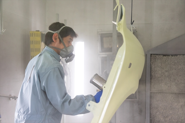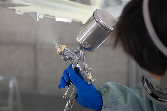 修理箇所をきれいに整形したあと、塗装にはいります。