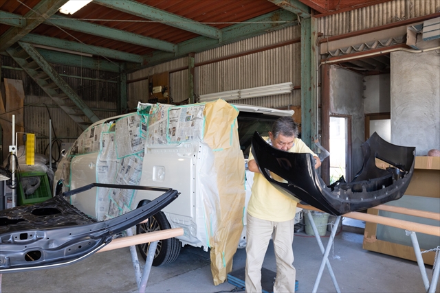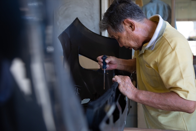 その後板金が必要であれば修理箇所にあわせて自然な形状になおします。